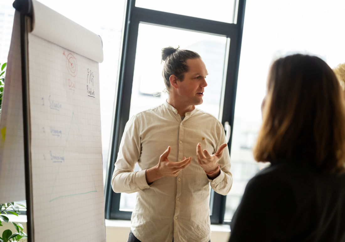 - Uitgebreid oefenen met concrete technieken, tools en handvatten op het gebied van overtuigend presenteren.